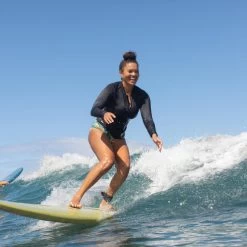Lors de la phase de glisse ce bodyboard s’utilise en position allongée. Il est important de porter un top anti-UV manches longues ou une combinaison néoprène pour éviter les irritations sur le ventre et les bras.
