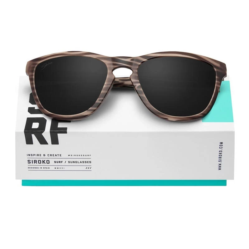 Siroko Rodiles sunglasses with sporty character, polycarbonate frame with wood effect finish, polarized black lenses, and complete UV400 protection