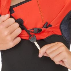 La fermeture avec sans zip poitrine permet de libérer les mouvements tout en assurant une meilleure étanchéité qu’une fermeture dorsale classique. Le cordon de serrage permet d’ajuster la fermeture.